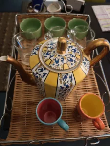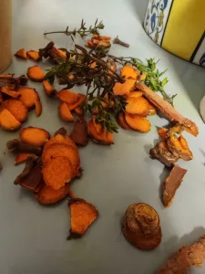 D’abord observer les différents éléments : les contenants, écouter le son de ce qui est reparti dans les différents contenants (oui, c’est un peu phénoménologique comme explications ) toucher ce qui vient d’être déposé dans les mains, sentir l’odeur du contenu, puis porter à la bouche et goûter.